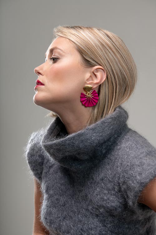 Χειροποίητα σκουλαρίκια φτιαγμένα από μπρούτζο ντουμπλαρισμένο με φύλλο χρυσού 24kt, ασήμι και μετάξι.